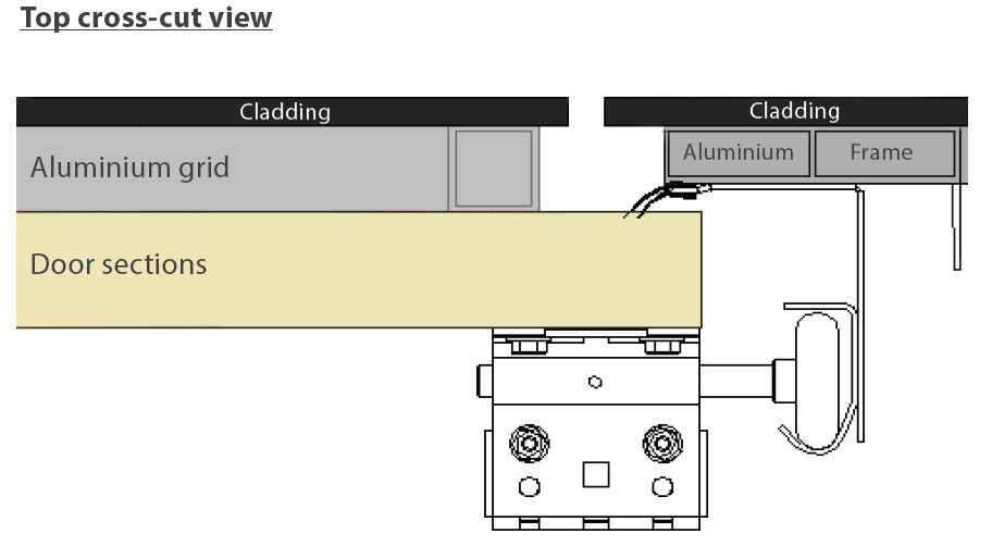 Firstly, the door must be installed flush in-between the opening using the aluminium frame. The door sections have additional aluminium grids which align the facade and garage door surfaces. Secondly, the sections split and layout must match the facade cladding layout. In pictures with the cross-cut view, you can see the principal design idea.